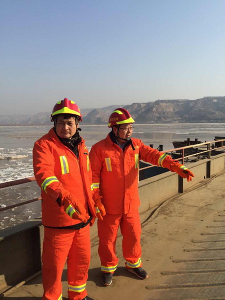 險情就是命令!1月17日17時,接到省突發(fā)地質災害應急排查突擊總隊應急響應指令后,渭南支隊立即啟動應急響應,迅速整裝集結。支隊長劉曉東、副支隊長王和平率領7名突擊隊員,攜帶應急裝備,一路風馳電掣,當晚20時,比總隊要求時限提前兩個小時到達合陽縣洽川鎮(zhèn)集結地。抵達后,支隊長劉曉東、副支隊長王和平帶領突擊隊員立即奔赴“洽吳”黃河浮橋指定位置,進入緊急臨戰(zhàn)狀態(tài)。