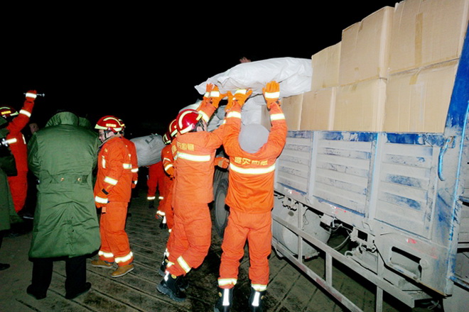 夜晚黃河橋冷風刺骨,氣溫低達-8℃。按照總隊制定的攔截壩敷設方案,劉曉東、王和平帶領突擊隊員頂著凜冽的寒風,與渭南市、合陽縣環(huán)保局工作人員一起搶卸卡車,將鋼絲繩、扳手、鉗子、活性炭包等應急器材器具迅速配送到位,隨時準備敷設攔截壩。所有人都在急切地等待著上游的監(jiān)測結果。